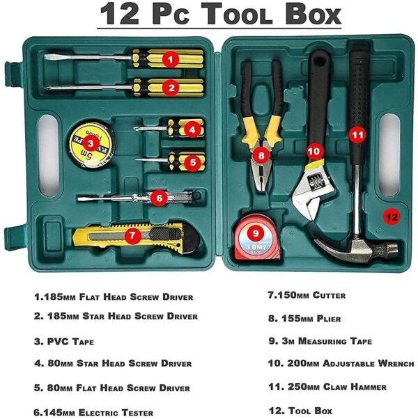 1. 12 pieces home repair tool set for daily home maintenance, easy to use at home.