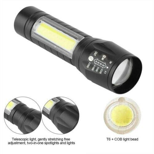 - Waterproof The led mini flashlight with full waterproof design, O-type sealed waterproof ring, so that the product better waterproof, normal use in heavy rain. [Widely Used]The led cob flashlight is processed three levels of militory hardening treatment, wear resistance, corrosion resistance, non-slip in place. Suitable for hunting, biking, hiking, camping, outdoor activities, etc..