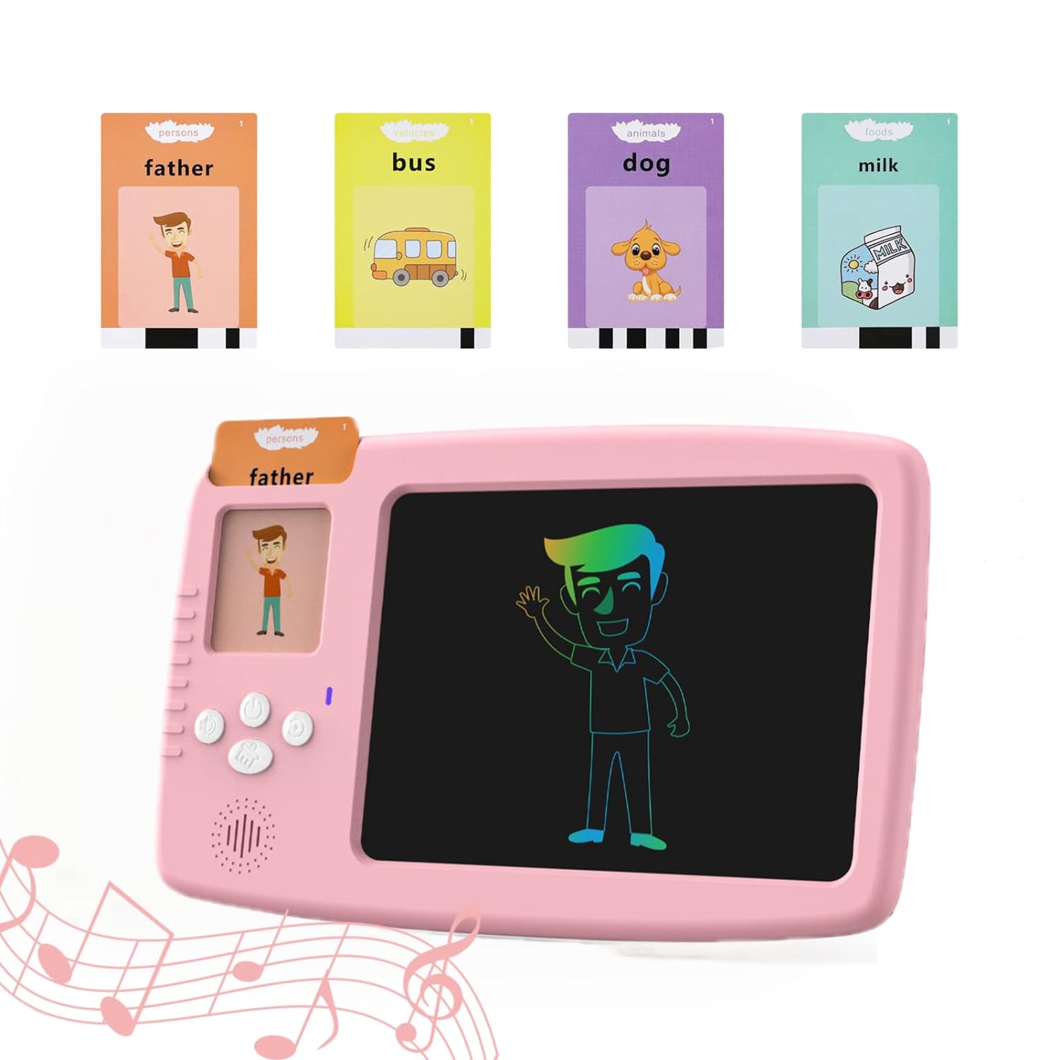 - 📚EARLY DEVELOPMENT LEARNING TOYS: We combine a talking flash cards reader and LCD writing pad into an upgraded learning toy to help children develop reading, writing, and drawing skills. Great self-teaching tool and autism speech therapy material for kids.
