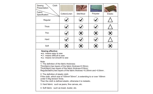 - FABRICS THAT CANNOT BE STITCHED: Thick fabrics like denim, velvet and other thick fabrics