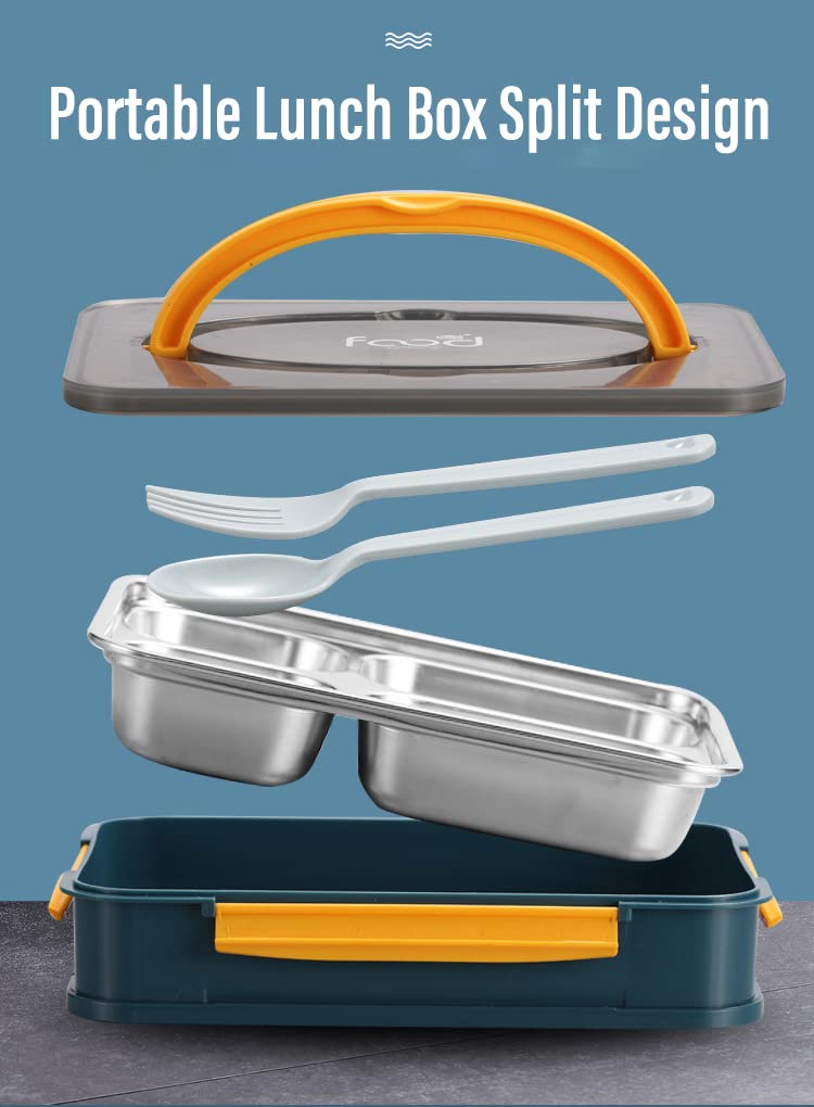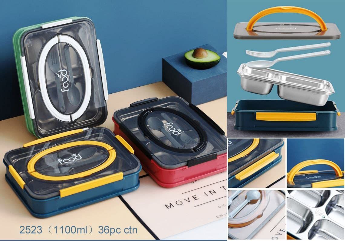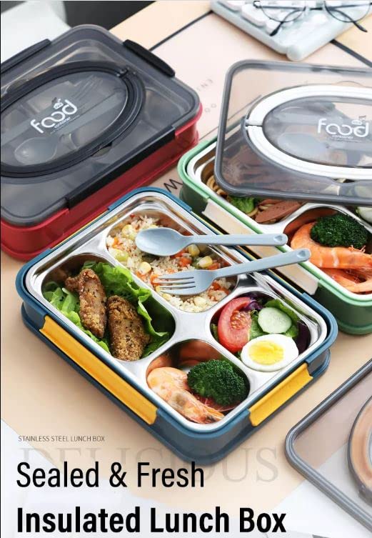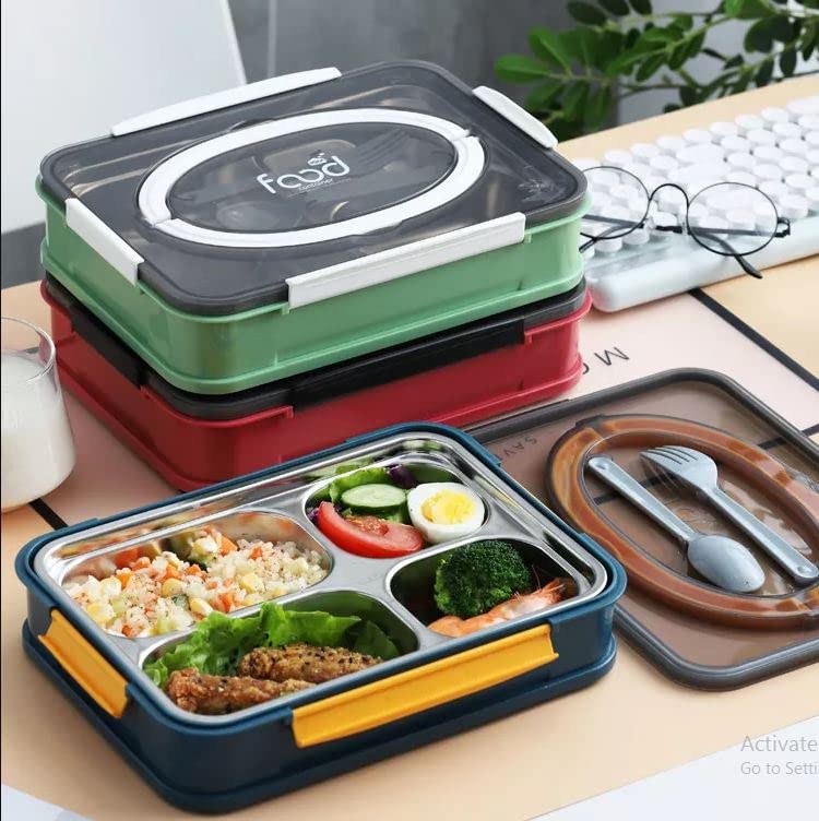 TITLE : Thermal Insulation 4 Compartment Lunch Boxes Reusable Microwave Freezer Safe Stainless Steel Portion Snack Containers for Adults and Kids 4 Compartment Stainless Steel Lunch Boxes with Removable Inner Plate Reusable Microwave Freezer