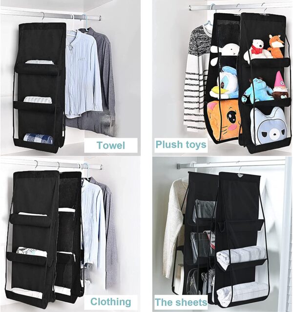 - Conveniently keep your handbags, purses, clutches, and other items like blankets or sheets neat and organized with Lirex 6 pocket hanging organizer, easily creating storage space and making your closet clutter free.