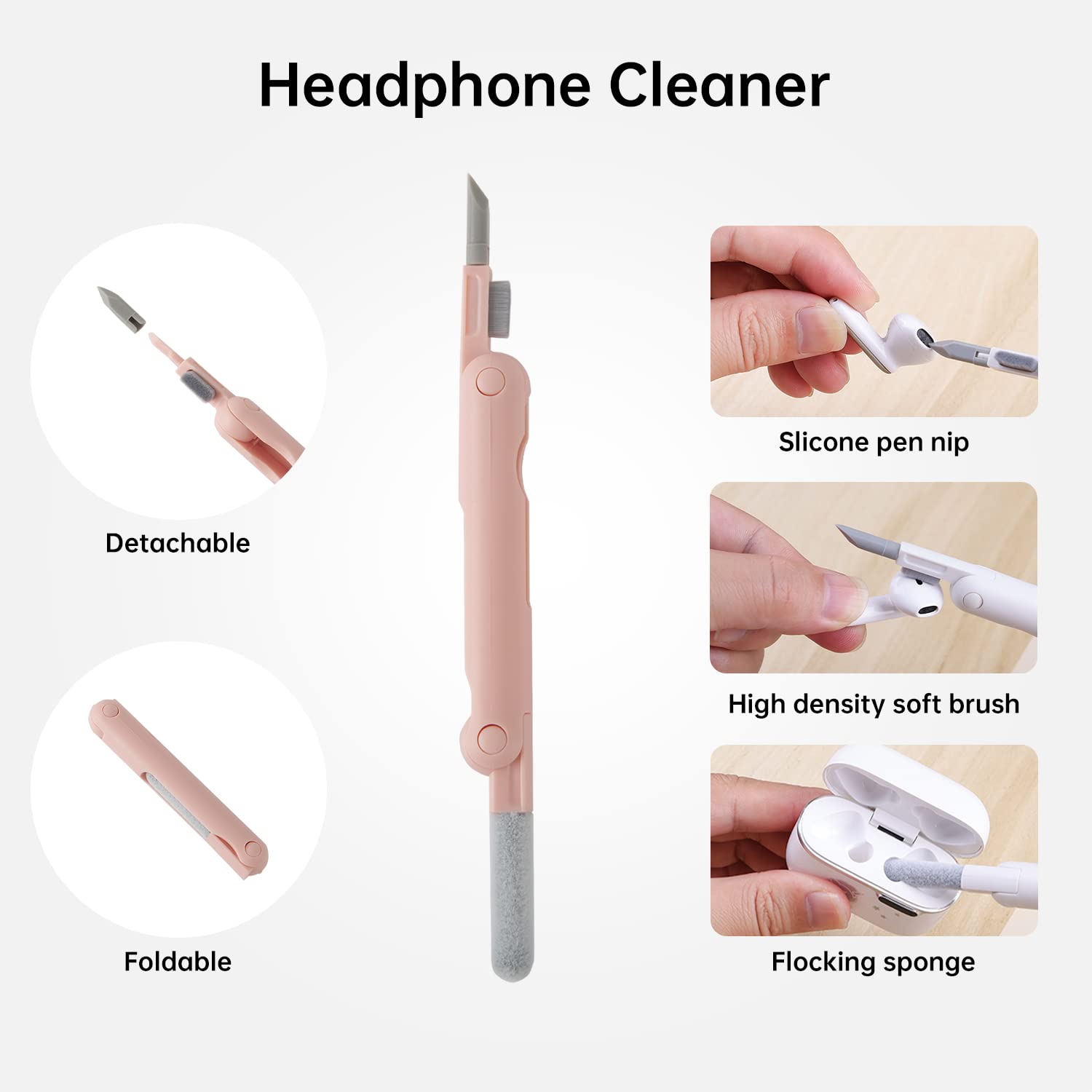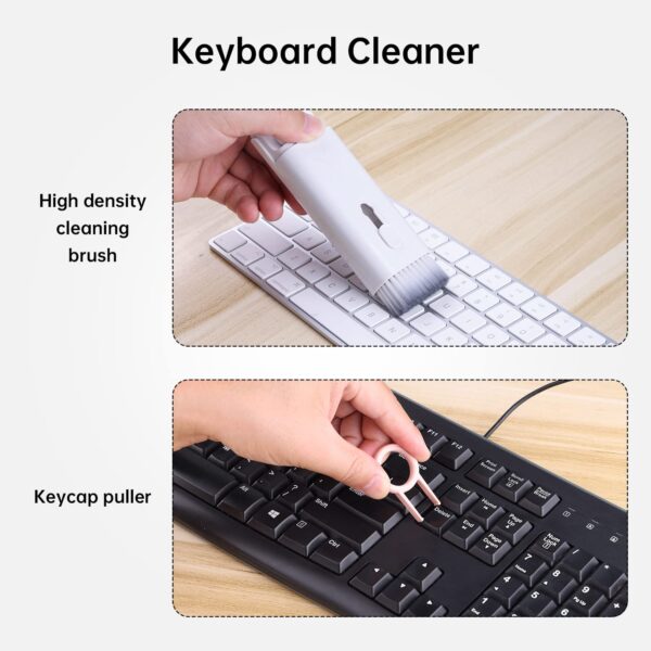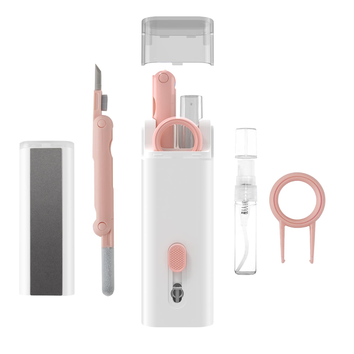 - Multi-function Cleaner Kits: 7-in-1 earbuds cleaning kit includes 1 cleaner pen for Airpods, 1 large retractable high-density brush, 1 soft sponge, 1 Keycap Puller and 1 Screens Cleaners Spray 5ml. Meet your electronics cleaning needs.