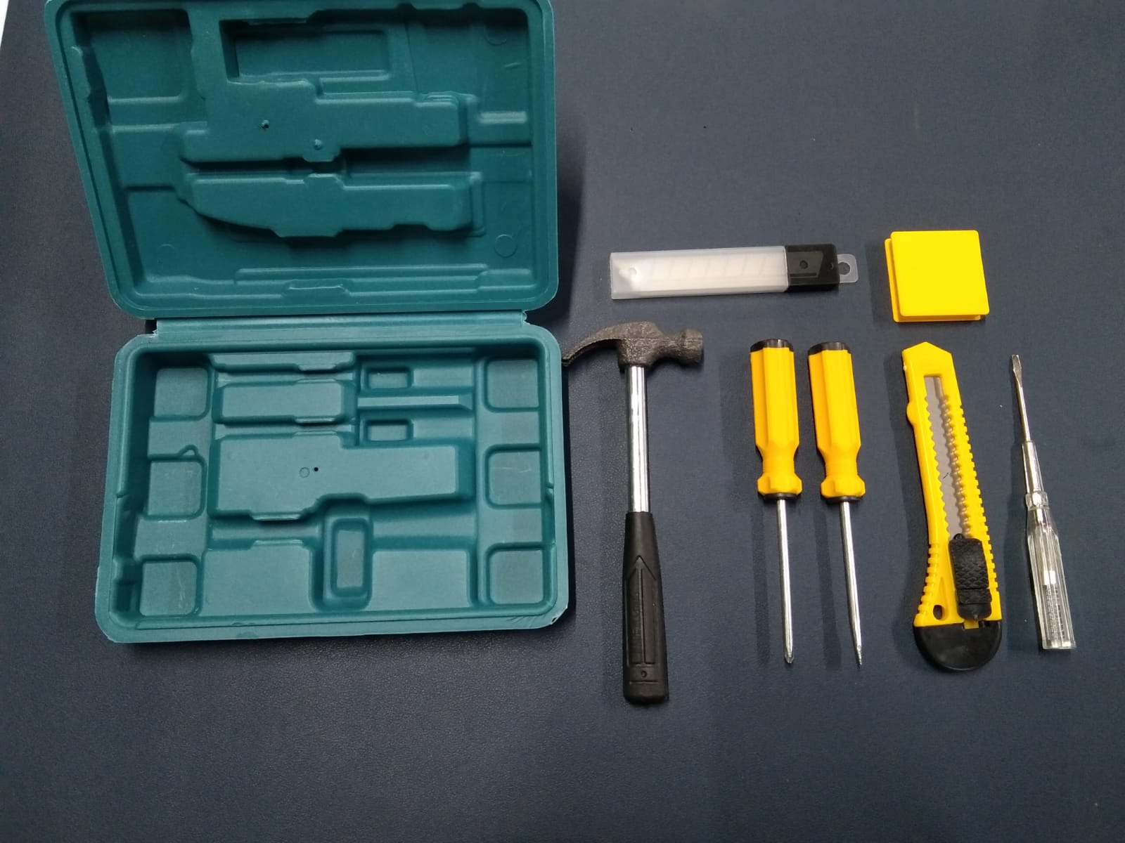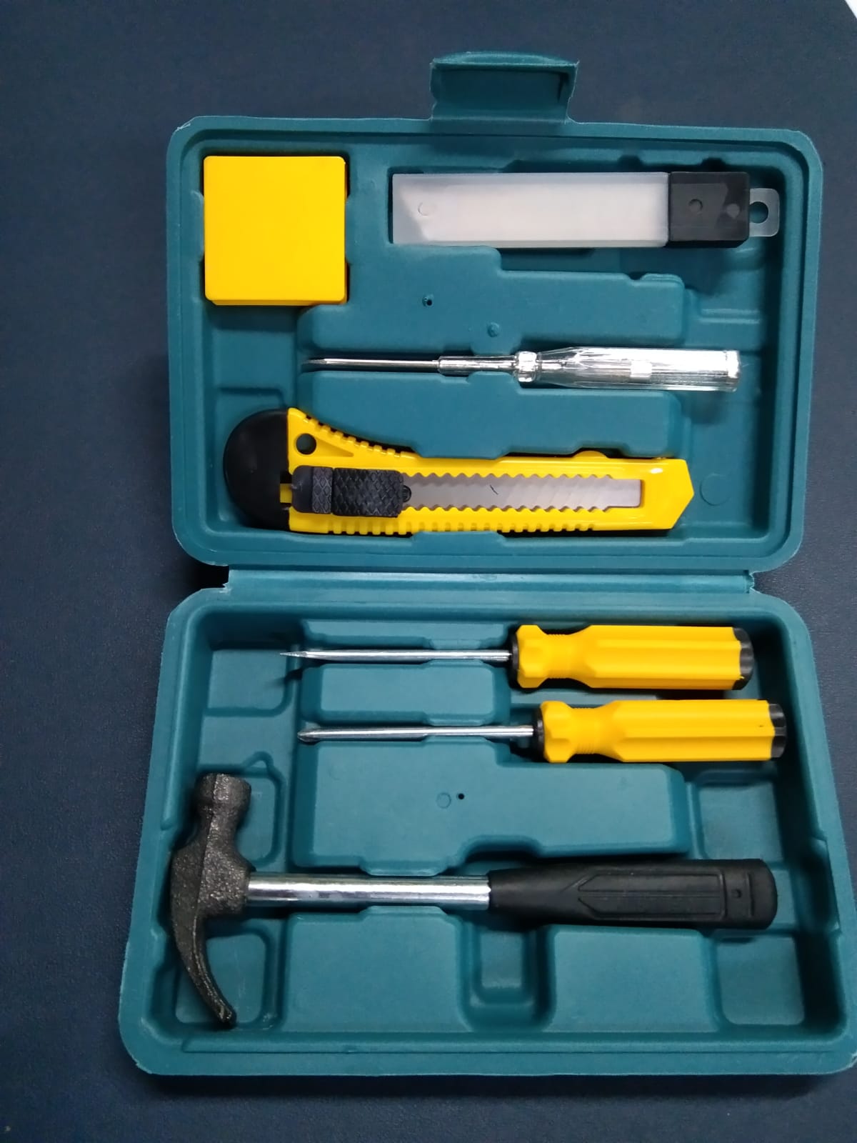 packing size 42x28x41cm packing weight 580g package include: 1 x 6 inch wire cutter 1 x art design knife 1 x digital electroprobe 1 x steel tape 1 x blow moulding box 2 x screw driver(5×75) 1 pcs cutter lid