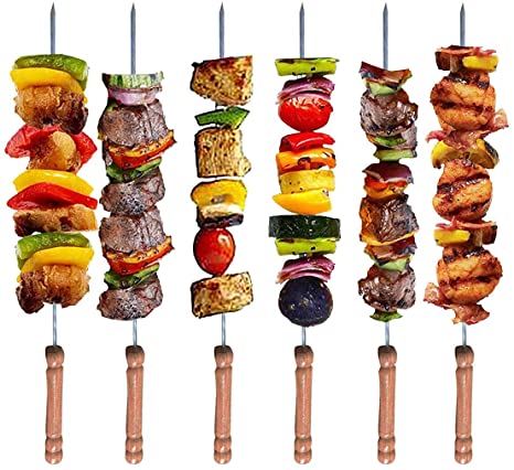 The skewers are made of non-toxic stainless steel with non-slip wooden handle. It is safe and convenient for roasting, grilling.