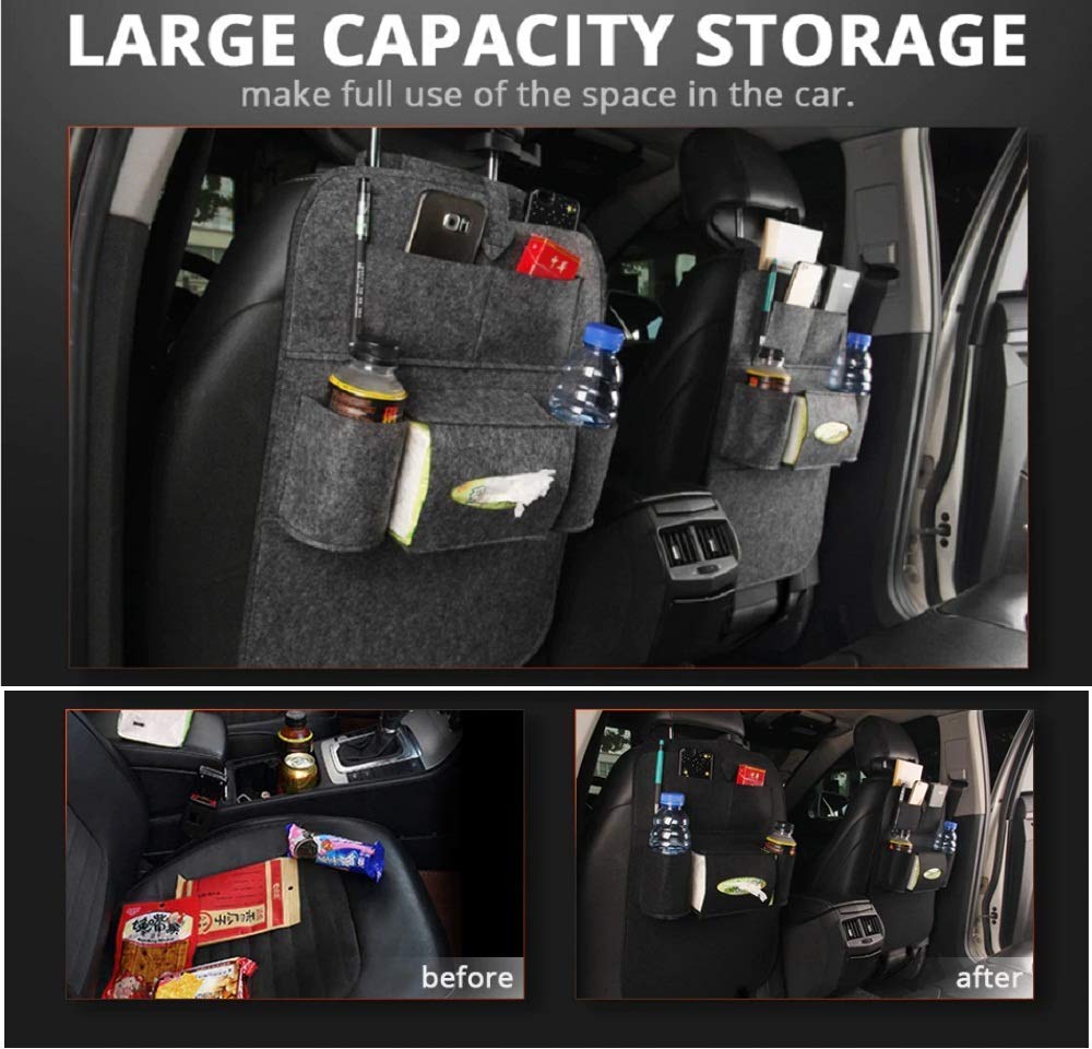 - Keep your car clean – you could wipe clean with soft cloth, The back seat organizer is made of luxury pu leather to ensure durability and eliminate stretching or shrinkage, Waterproof backing protects the car seat upholstery from liquid spills and stains