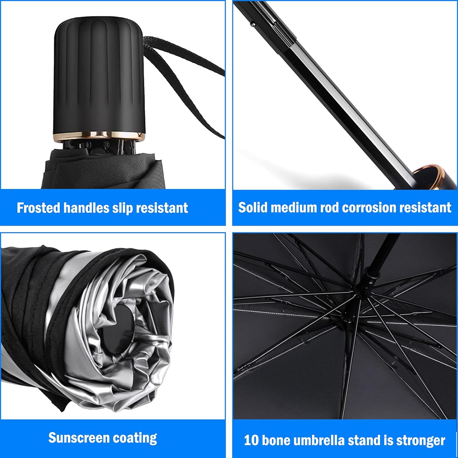 - Premium materials–This Foldable car front window shade is made of premium high-hardness steel and high-quality composite Titanium Silver Cloth.10 Strong skeletons and the solid stick ensure the durability of this car sunshade umbrella. And the frosted handle gives you a comfortable touch.
