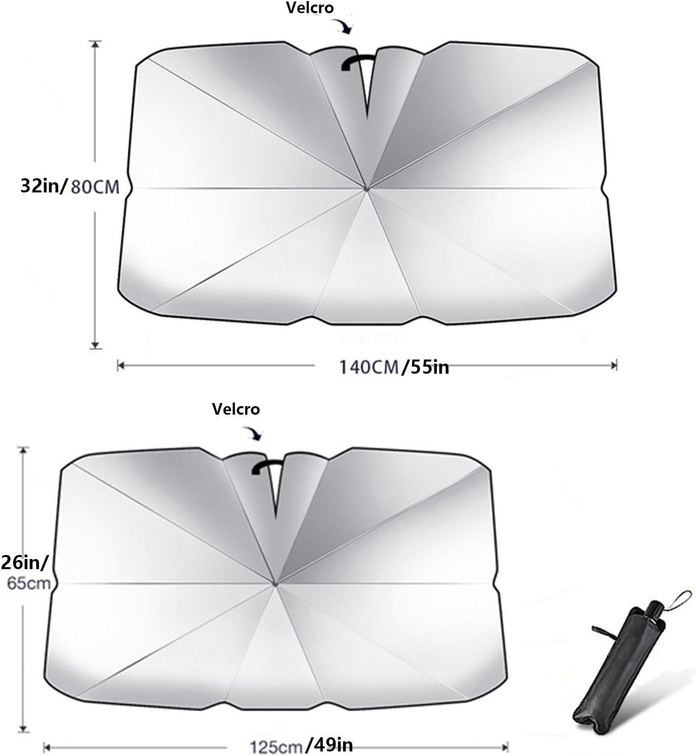 - 【Easy To Use and Store】 Foldable Car Shade Front Windshield Is Easy To Open and Close. The Folding Size Same A Normal Umbrella. You Can Store It Into The Leather Storage Bag, and Place In The Car Door, or Central Storage Box.