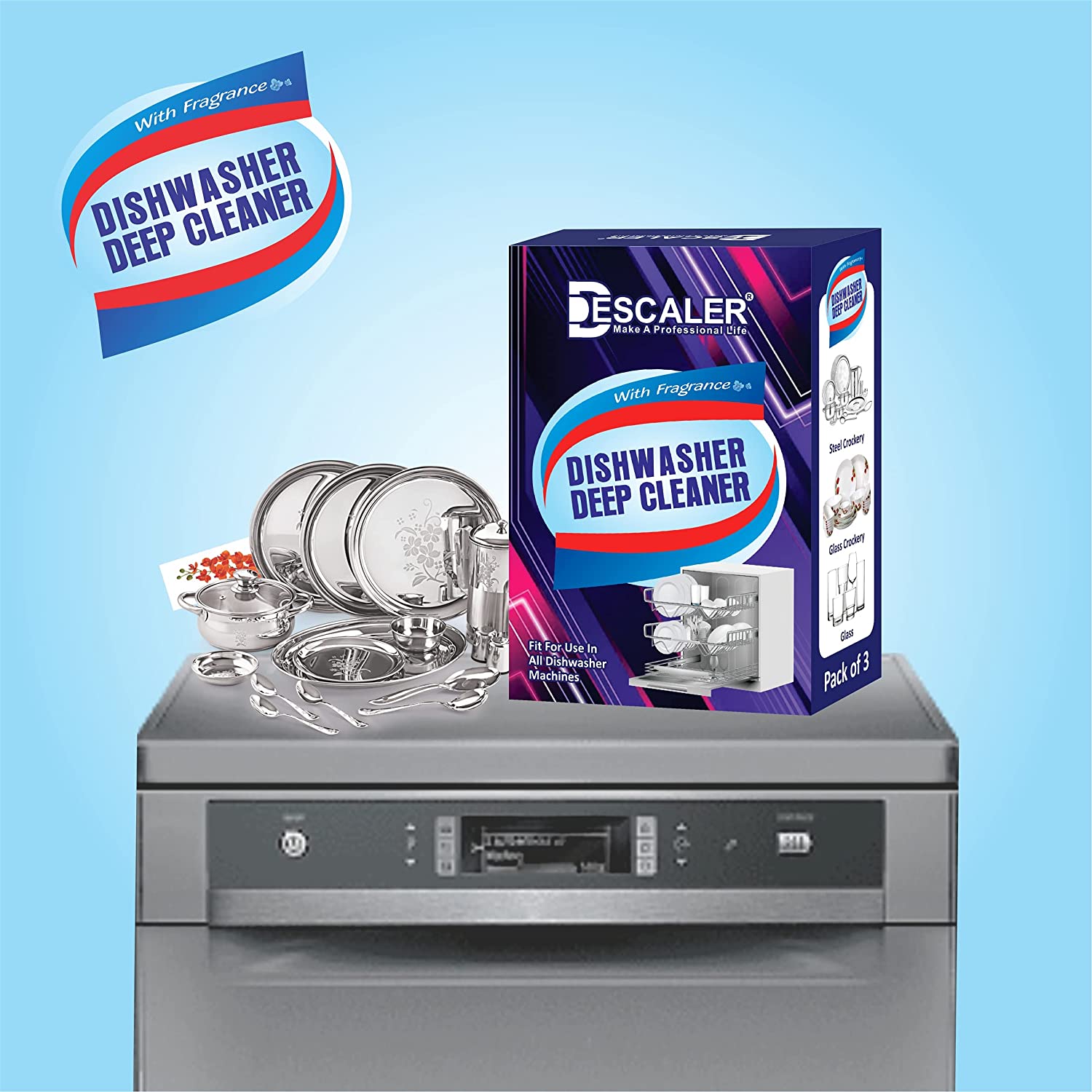 - Descaler Powerfully Removes Lime Scale, Rust, Grease & other buildup caused by hard water, detergent and food residues. Over time, this buildup affects your dishwasher’s cleaning performance and can lead to the presence of harmful bacteria. Regular dishwasher cleaner use keeps your machine amazingly clean, fresh and maintained.