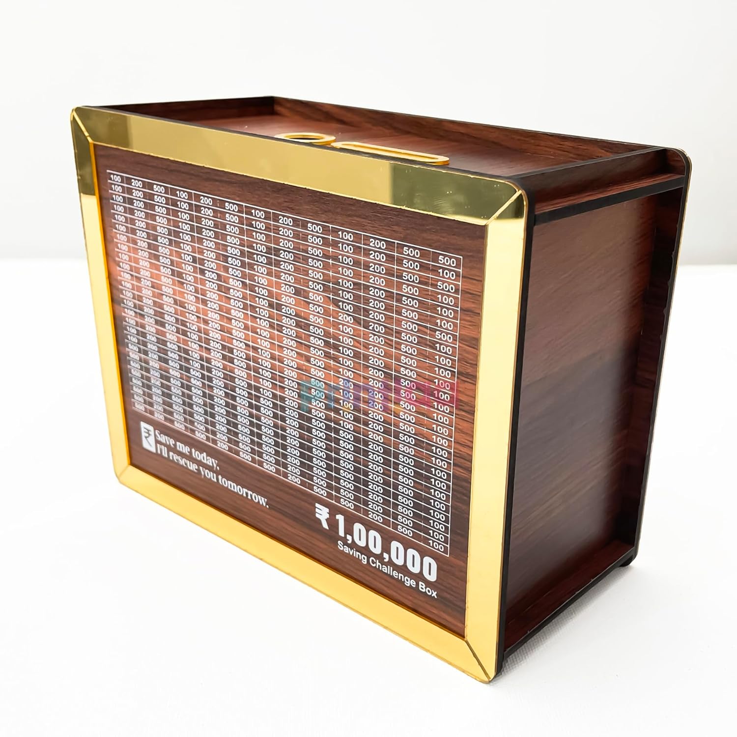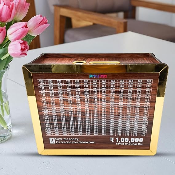 - Customizable Savings Goals: The Printiaa Wooden Money Saving Box allows you to set your own savings target. Choose from savings goals like ₹10,000, ₹50,000, ₹1,00,000, ₹1,50,000, or create a unique goal using the customizable cards provided.