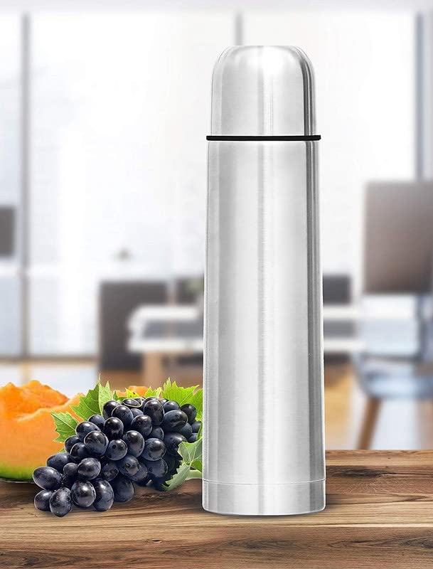 TITLE : Stainless Steel 1 Litre Vacuum Bullet Design Flask Bottle with Bag/Cover Features Screw Cap, Insulated Flask Thermos (Silver)