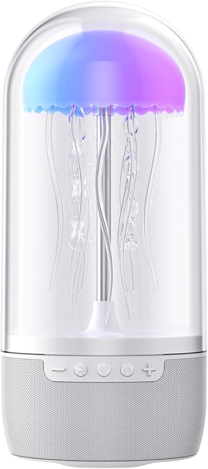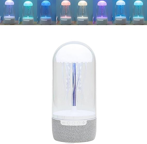 - TRANSFORM YOUR SPACE: Immerse yourself in the serene beauty of an underwater oasis with our Jellyfish Mood Light Speaker. Eight multi-colored LED lights mimic the captivating movements of jellyfish, creating a soothing and enchanting atmosphere.