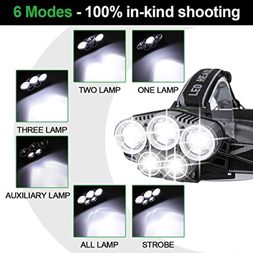 TITLE : Flashlight Headlamp, USB Rechargeable Headlamp,6 Modes 5 LED Ultra Bright IPX4 Waterproof,90 Degrees rotated Work Light for Outdoors, Household, Hiking ,Camping ,Emergency Rechargeable Headlamp Flashlight 3500 Lumen Waterproof and Comfortable Headlamp 5 Lights 6 Modes Ultra Bright Outdoor Camping Fishing Headlamp Rechargeable 5 LED Headlamp Flashlight 6 Modes with Adjustable Thick Headband for Camping Hiking Fishing BBQ Repairing Night Walking