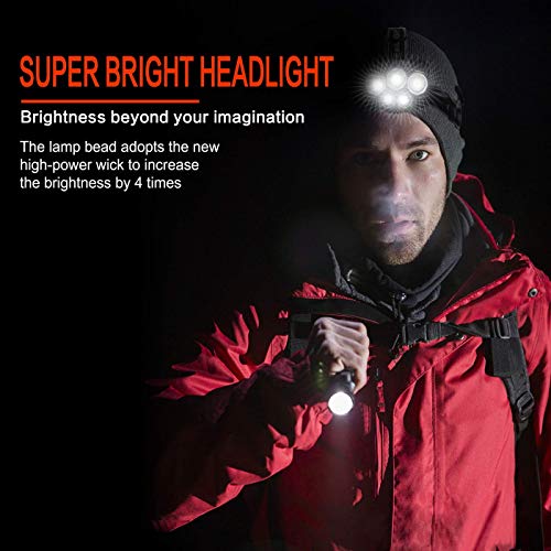 - [Multiple Operative Modes]Head flashlight has 6 operative modes to meet your various needs. It can be easily controlled by only one button. It has power lighting mode, warm lighting mode, and SOS mode. Also, the battery socket is attached with a red warning light to ensure safety at night, and to allow you to use it with confidence.