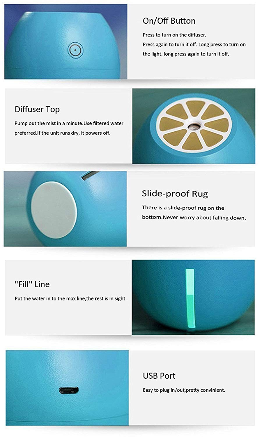 - 1 x Lemon Mini Humidifier * 1 x USB cable * 1 x Manual * 1 x cotton swab