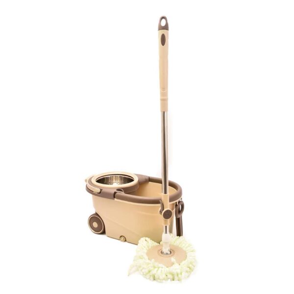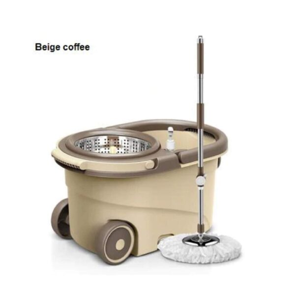 Luxury Super Microfiber Mop Head Bucket with Wheels 360 Magic Mop. This mop bucket is a elegant, first class quality production, graceful colour. Peferct to use in your house, or for car washing, window cleaning. The mop bucket is medium size with thick sides. Slightly draw the dragging handle, you can take the bucket wherever you want to do the cleaning in your house.