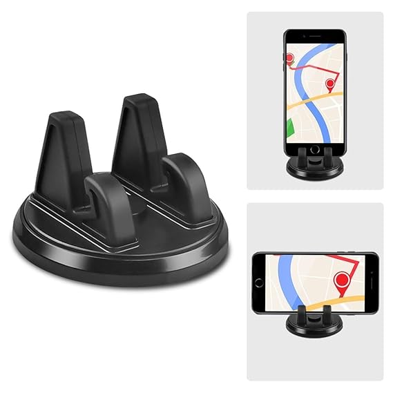 • 3 purpose mobile car mount holder stand for windscreen, dashboard and table desk It has adjustable 360 degree rotation of the phone holder for optimal positioning of your phone depending on your needs and comfort The car dashboard phone mount adopts the principle of triangular to ensure stability, steadily supporting your cell phone at three points without shaking or slipping. Soft silicone rubber material is anti-slip and protects your phone from scratches.