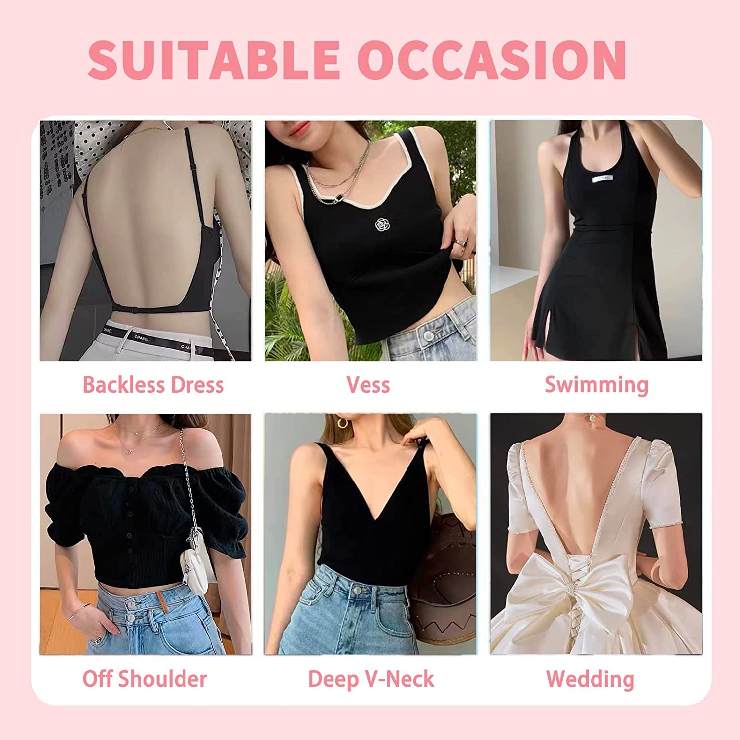 - WIDE APPLICABILITY: Perfect for backless/strapless dresses, t-shirts, halter tops, wedding gowns, sports bras, and swimsuits. Friendly to A-E cups, the bra tape will lift and push up even the heaviest breasts to achieve the boobs shape you want. Bob tape for breast lift