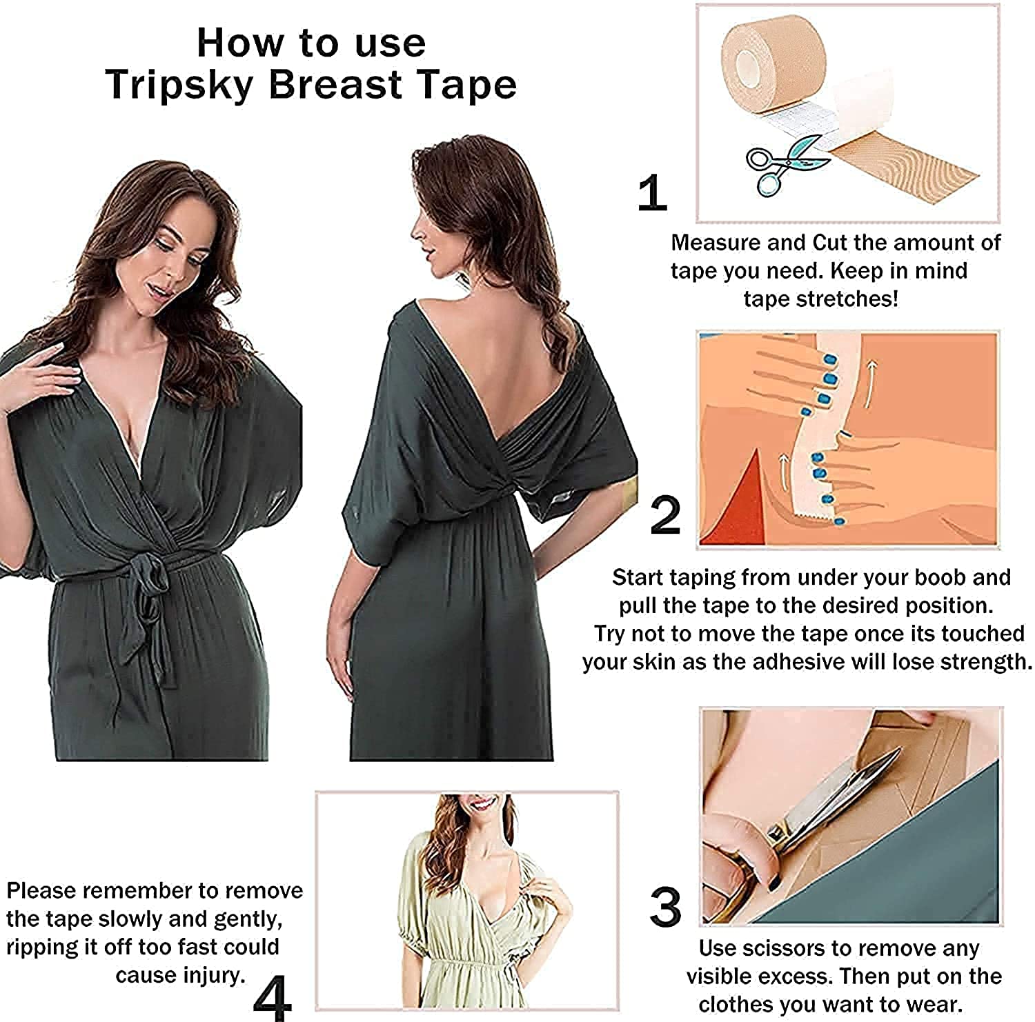 - EASY TO USE: Breast tape breast lift is a stick on bra alternative, that (unlike most stick on bras) actually works! It is what you use when need support but you can’t wear a bra with your outfit.
