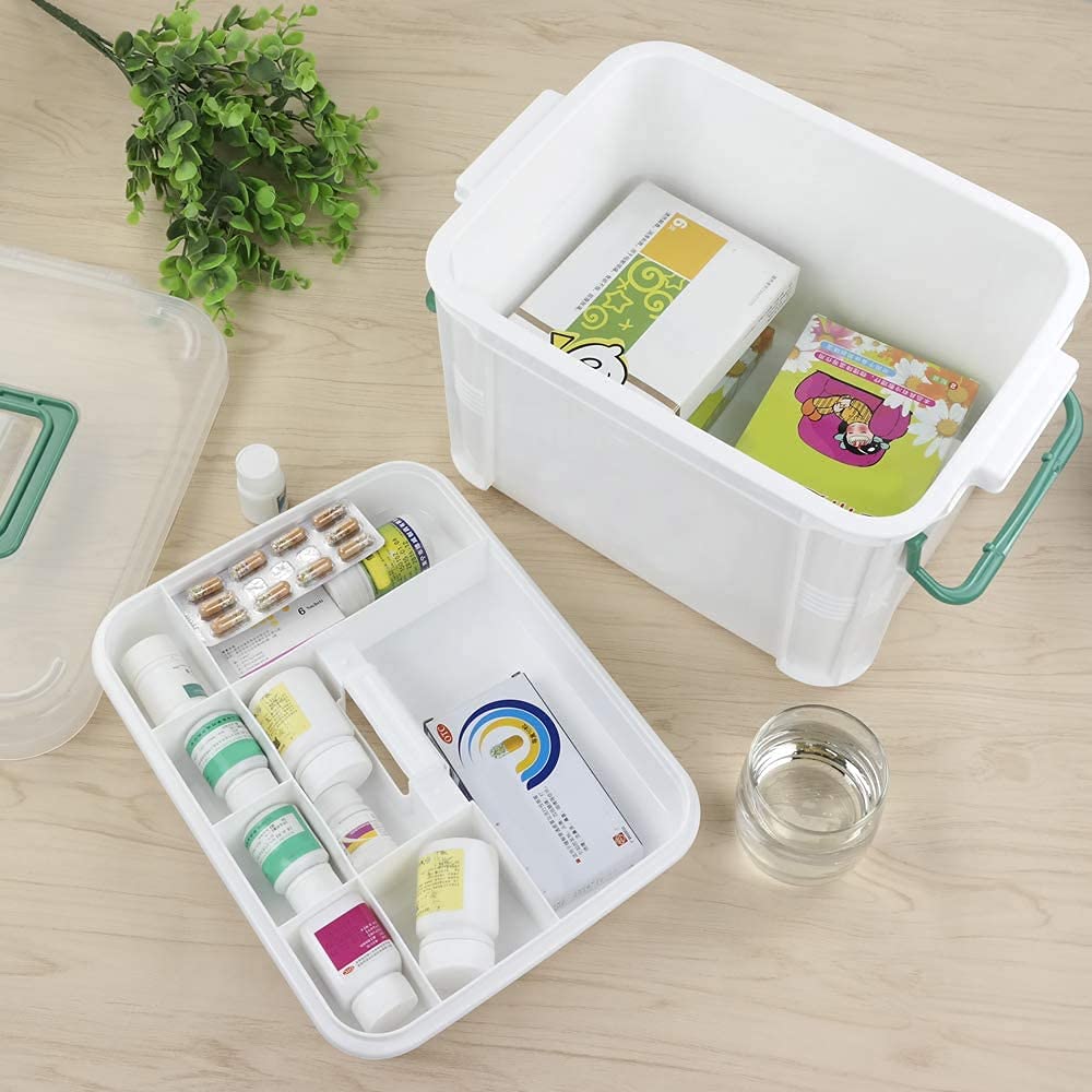 TITLE : Plastic Portable Emergency Medical Kit Medicine Organizer Storage Container First Aid Box with Locking Lid & Carry Handle for Home Camping Travel Family Medicine Box Portable Plastic First Aid Medical Box Kit Emergency Medicine Organizer Storage Box Travel Medicine First Aid Emergency Medical Kit Box with Detachable Tray and Carrying Handle for Home Camping Office