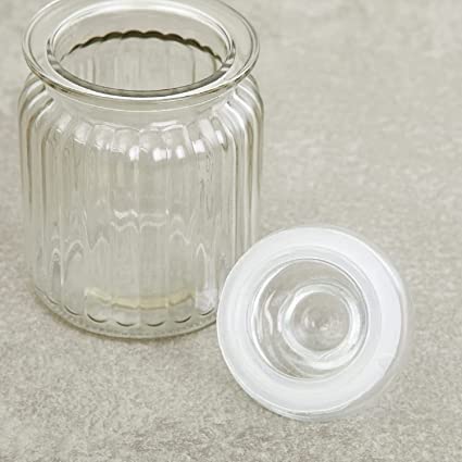 Glass Pop Jar With Glass Airtight Lid for Kitchen Storage Coffee Sugar Tea Herbs Jam Cookies Masala Biscuit Storage Container Transparent 650 ML (pack of 3) ☻ Design Airtight Lid Glass Pickle Storage HONEY | Herbs Jar There is no need to guess what’s inside your canisters sets any more since crystal clear glass allows for easy monitoring and identification. They also can be stacked on each other to save space for your cabinet and pantry organization. For storing food items such as honey, jams, pickles, chocolates, etc. Suitable For Storing Food Items. Air Tight Cap assures to even smell of the goods stored will not come out. Highly trusted by all food service professionals for the quality and durability of products. ☻ classic glass jar: This storage jars are a perfect solution as a stylish storage option for your home. They become an excellent home decor and an equally functioning storage choice. ☻ Secure Airtight Sealing: our glass lid with silicone seal keeps air out, creating an airtight environment to keep your food stay fresh and dry for a long time. Air Tight Cap assure to even smell of the goods stored will not come out. ☻ Ideal For: Well, pretty much anything. They’re great for items around your kitchen like cookies, flour, sugar, dog treats, herbs, oats, snacks, coffee, pasta, spices, and tea. Some customers like to use them for DIY pickling and canning at home. ☻ BENIFITS OF SMALL CONTAINERS: The Best quality Glass Jar Capacity 650 ML .Suitable For Storing Food Items. Air Tight Cap assure to even smell of the goods stored will not come out. Color: Transparent Material: Glass Shape: Round