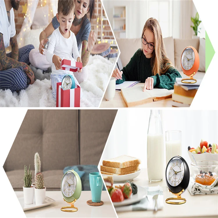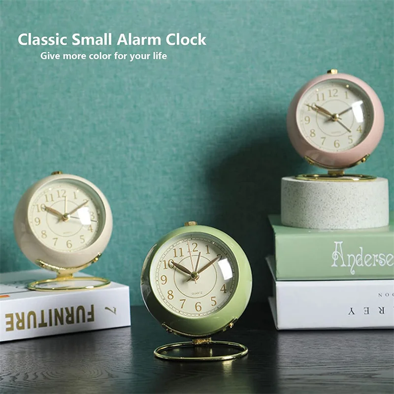 TITLE : Small Desk Clock for Table, Non Ticking Retro Analog Vintage Alarm Clock, Modern Gold Clock for Bedroom Nightstand