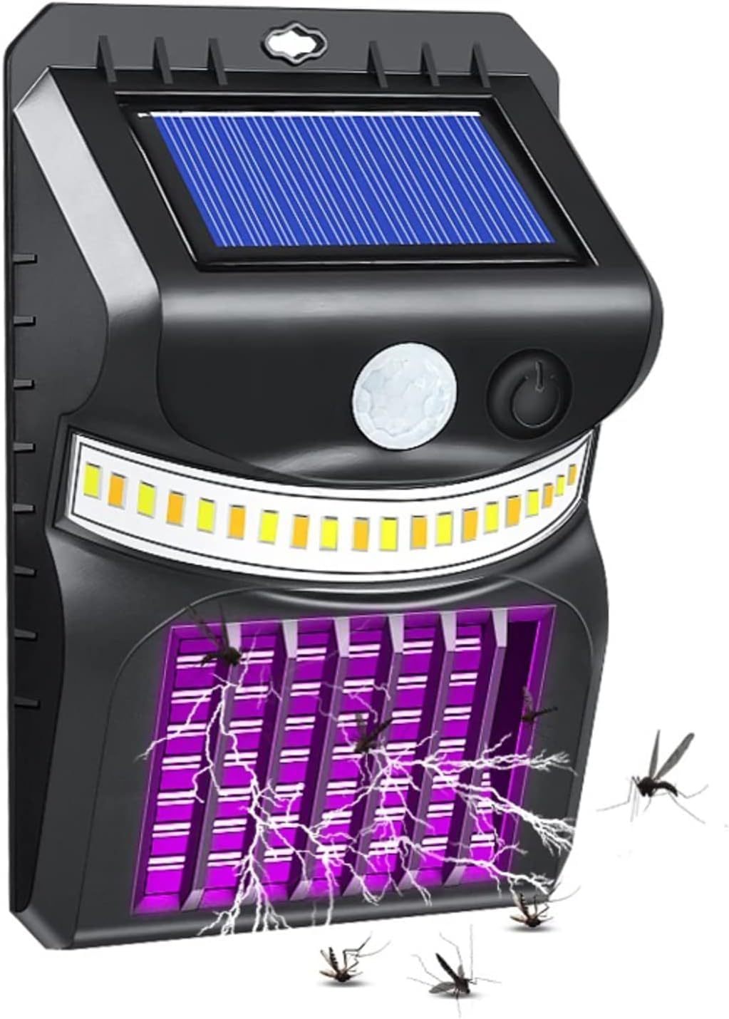 - Soft Light Is Not Dazzling Of Motion Sensor Wall Light. Intelligent Chip Control(11 White Led Chips, 10 Warm Led Chips And 5 Purple Led Chips), Automatic Charging And Automatic Light. Using 365-390Nm Uv Light To Wide-scale Attract Mosquito Electric Shock To Destroy Mosquitoes.