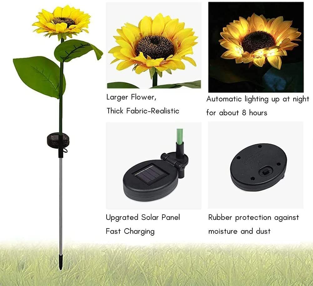 TITLE : Solar Garden Lights Outdoor, Solar Sunflower Lights Garden Decor, Gifts for Mom, Waterproof Solar Pathways Lights for Patio, Yard, Flowerbed Decoration 2 Packs Solar Sunflower Lights,Upgrade Solar Powered Sunflower Lights with 2 Sunflower,LED Solar Lights Outdoor for Patio Lawn Garden Yard Pathway Decoration