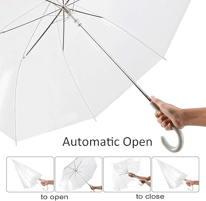 - TRANSPARENT UMBRELLA: Showcase your style on any rainy occasion, from classy wedding photo sessions to maintaining your perfect hairstyle and makeup en route to the office. The chic clear design ensures your fashion sense remains the highlight.