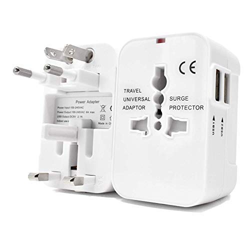 TITLE : Smart Universal Travel Adapter with Dual USB Charger Ports, Multi-Plug with Surge Protector Worldwide All in One Universal Power Wall Charger AC Power Plug Adapter with for compatible with smart Phone Mobile iphone Laptop camera tablet More Than 180 Countries smart Multiplug Multipin International Universal Travel Adapter plug charger with Built in Dual 2 X USB Charger Ports with LED Indicator Surge/Spike Protected Electrical Plug with Inbuilt Surge Protection